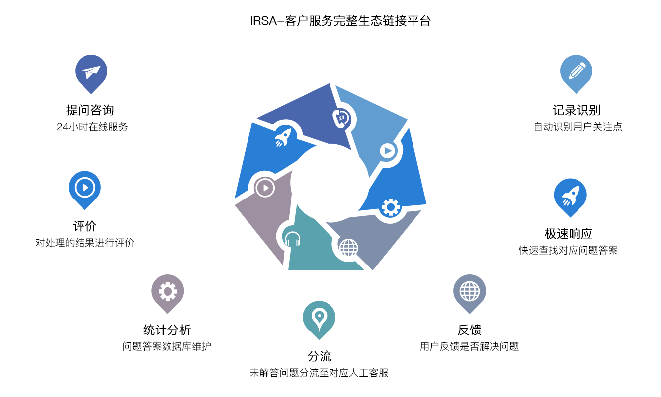 IRSA(IntelligentRobot Service Assistant),即智能机器人客服助理,支持多语言统一管理,整合机器人智能问答和在线分流,提供实时答疑指导,获取内容更方便、更精准,针对用户询问情况进行标准化回答和统计分析,实现高效答疑和人工客服分流管理,减轻人工客服负担,提高客户服务效率。